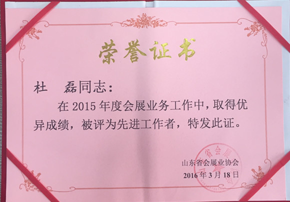 2015年度山東會展行業(yè)先進工作者。 記者 李曉夢/攝