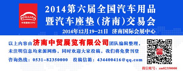 2014年為期三天的第六屆全國(guó)汽車用品暨汽車座墊(濟(jì)南)交易會(huì)將于12月19日在濟(jì)南國(guó)際會(huì)展中心隆重舉行。展會(huì)是由濟(jì)南市人民政府、陽(yáng)谷縣人民政府、中貿(mào)國(guó)際主辦,由山東省濟(jì)南汽車用品商會(huì),濟(jì)南市貿(mào)促會(huì)、陽(yáng)谷縣民營(yíng)經(jīng)濟(jì)發(fā)展局、濟(jì)南中貿(mào)展覽有限公司、陽(yáng)谷縣汽車座墊行業(yè)協(xié)會(huì)聯(lián)合承辦的集汽車座墊、腳墊、把套、汽車裝飾、汽車美容養(yǎng)護(hù)、太陽(yáng)膜、防爆膜、電子影音設(shè)備以及汽修汽保、連鎖加盟服務(wù)于一體的全國(guó)性大型綜合展會(huì)。此次展會(huì)展出面積達(dá)到5萬(wàn)多平米,共計(jì)展位2000多個(gè),其以“創(chuàng)新—必由之路,品牌-勢(shì)在必行”的辦展宗旨,憑借獨(dú)特的創(chuàng)意,科學(xué)的組織管理和卓越的服務(wù),以全新的理念為廣大汽車用品參展商提供一個(gè)“專業(yè)化、國(guó)際化、品牌化”的展示交流平臺(tái),為中國(guó)汽車用品行業(yè)提供更多的合作機(jī)會(huì),是有力推動(dòng)中國(guó)汽車用品眾多廠商開(kāi)拓市場(chǎng),展示產(chǎn)品必不可少的展會(huì)。