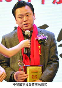 在2011年度(第八屆)中國汽車用品十大評選活動頒獎典禮現(xiàn)場,獲獎嘉賓濟南中貿(mào)展覽有限公司董事長杜磊莊重而榮耀的走上領(lǐng)獎臺,接受組委會授予的“十大流通服務(wù)機構(gòu)”至上榮譽,又一次向汽車用品行業(yè)證明了企業(yè)強勁實力與影響力。