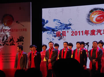 2012年2月13日,由慧聰網(wǎng)主辦,由中國汽車工業(yè)協(xié)會、中國汽車工程學(xué)會、中國汽車流通協(xié)會、中國國家標準制定委員會、中國汽車工業(yè)咨詢委員會、全國汽車服務(wù)高科技產(chǎn)業(yè)化委員會、廣州市汽車配件用品行業(yè)協(xié)會、河南省汽車用品業(yè)商會、哈爾濱汽車用品服務(wù)業(yè)商會、安徽省汽車用品行業(yè)商會、湖南省汽車用品行業(yè)商會、上海市工商聯(lián)汽車配件及用品業(yè)商會、北京汽車用品商會、中國電子商會汽車電子專業(yè)委員會協(xié)辦的汽車用品“奧斯卡”--2011年度(第八屆)中國汽車用品行業(yè)十大評選頒獎盛典在北京釣魚臺國賓館盛大舉辦。